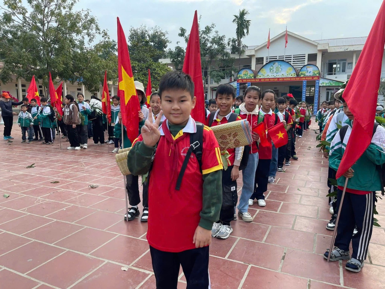 Bên cạnh hoạt động về nguồn Nhà trường còn tổ chức cho thầy cô và các em học sinh trong trường tham gia trải nghiệm hành quân “Học tập tác phong anh bộ đội cụ Hồ” đi bộ hơn 3 km từ trường đến các ngõ làng, thôn bản. Bước chân nhỏ bé nhưng nhịp nhàng thanh thoát. Lưng đeo cặp tượng trưng cho ba lô chiến sĩ được các em cẩn thận gắn lên lá ngụy trang chuẩn bị cho cuộc hành quân đầy ý nghĩa, các em cùng hành quân và hát vang các ca khúc ca ngợi Đảng, Bác Hồ ca ngợi tổ quốc và các anh hùng cách mạng với tâm khí đầy tôn kính và tự hào.